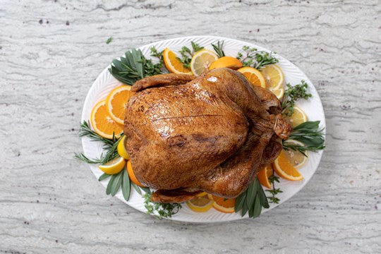 Fully cooked 10-12 lb organic turkey raised by Plainville Farms. All natural and antibiotic-free.